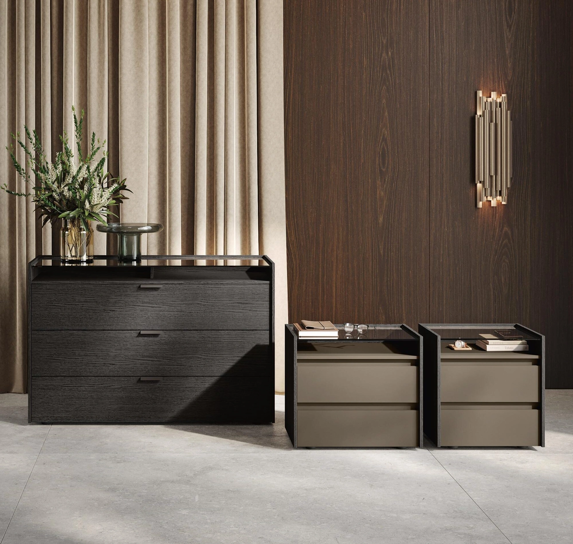 Nel nostro sito potrai trovare un ricco catalogo di mobili e complementi per la zona del riposo, tra cui anche il modello in foto. Eleganti piani di appoggio, strutture ben fatte, spazio utile: nei Comodini moderni che mostriamo questi vantaggi sono assicurati. Gruppo Notte Kristal di Morassutti: contattaci e ottieni informazioni sulle migliori soluzioni di Arredamento Casa disponibili in showroom e arreda la tua zona del riposo come l'hai sempre immaginata. Ottieni informazioni sulla nostra linea di Comodini, comò e settimini moderni della firma Morassutti e valorizza la tua zona notte con il gruppo notte che hai sempre sognato.
