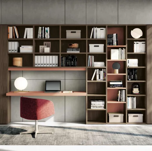 Finiture di pregio e forme decise: scopri la libreria New York 01 di Olivieri tra le più esclusive Librerie moderne divisorie.