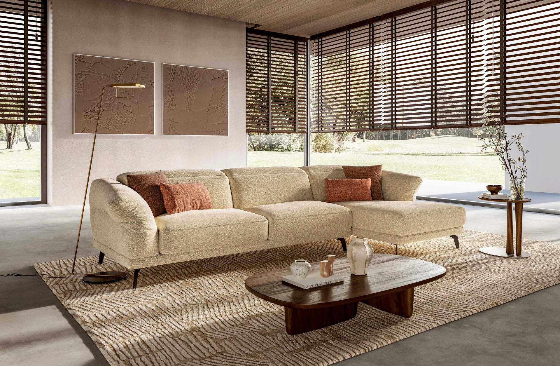 Divano con penisola Sky di Le Comfort: crea uno spazio accogliente e confortevole in spazi moderni di gran classe. I nostri Salotti sono pensati per essere abbinati a accessori di ogni tipo, come tavolini, lampade e piantane o in combinazione con ulteriori divani in tessuto. Se desideri imbottiti con penisola come il modello nella fotografia, caratterizzato dai volumi che invitano a goderti i tuoi momenti di riposo. La collezione di divani del brand in questione propone tanti spunti peculiari per decorare il living all'insegna di funzionalità, comfort e stile.